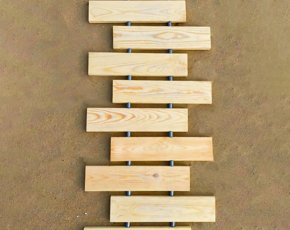 Соединение деревянной дорожки - металлический трос в пластиковой оплетке