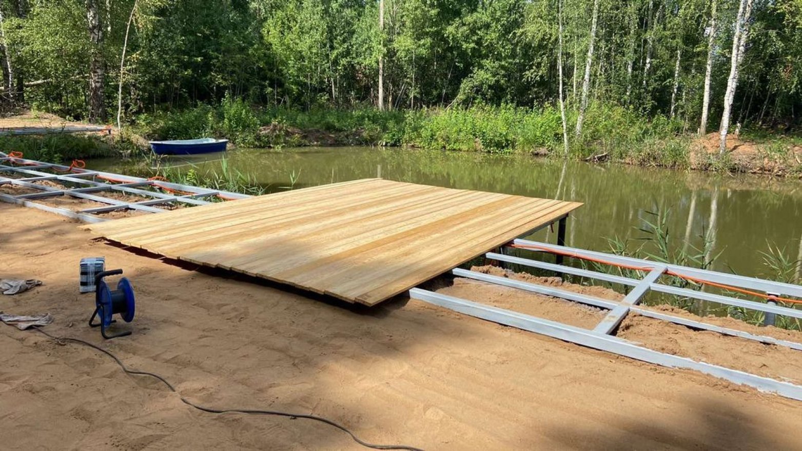 Деревянный пирс на металлическом каркасе обеспечит надежность и долговечность конструкции.