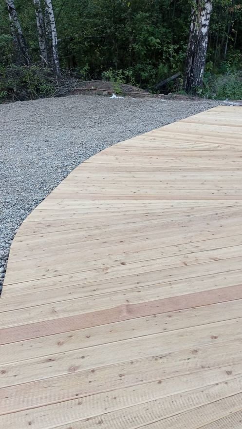 Для изготовления каркаса используются металлические трубы 80х80 и 80х40 мм., террасная доска из лиственницы.
