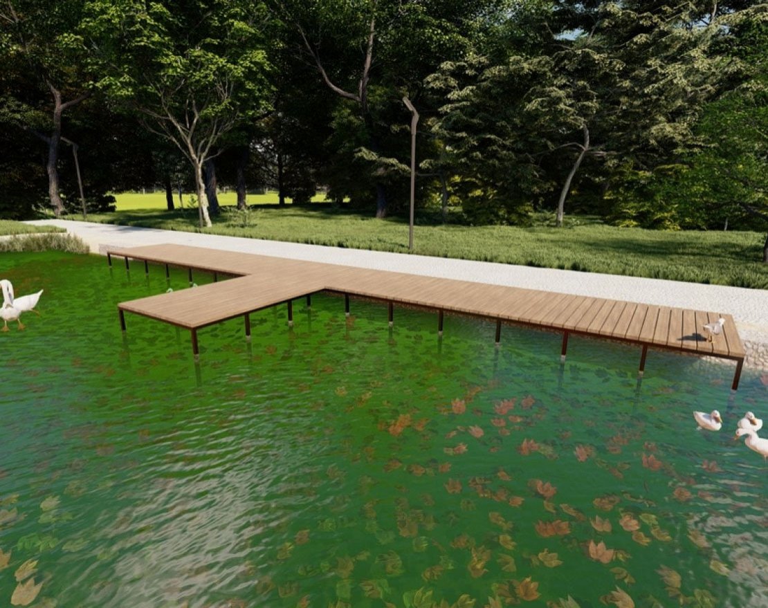 Пирс будет укреплен сваями, что обеспечит его стабильность и прочность.