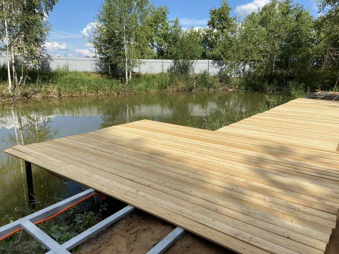 Деревянный пирс на металлическом каркасе обеспечит надежность и долговечность конструкции.