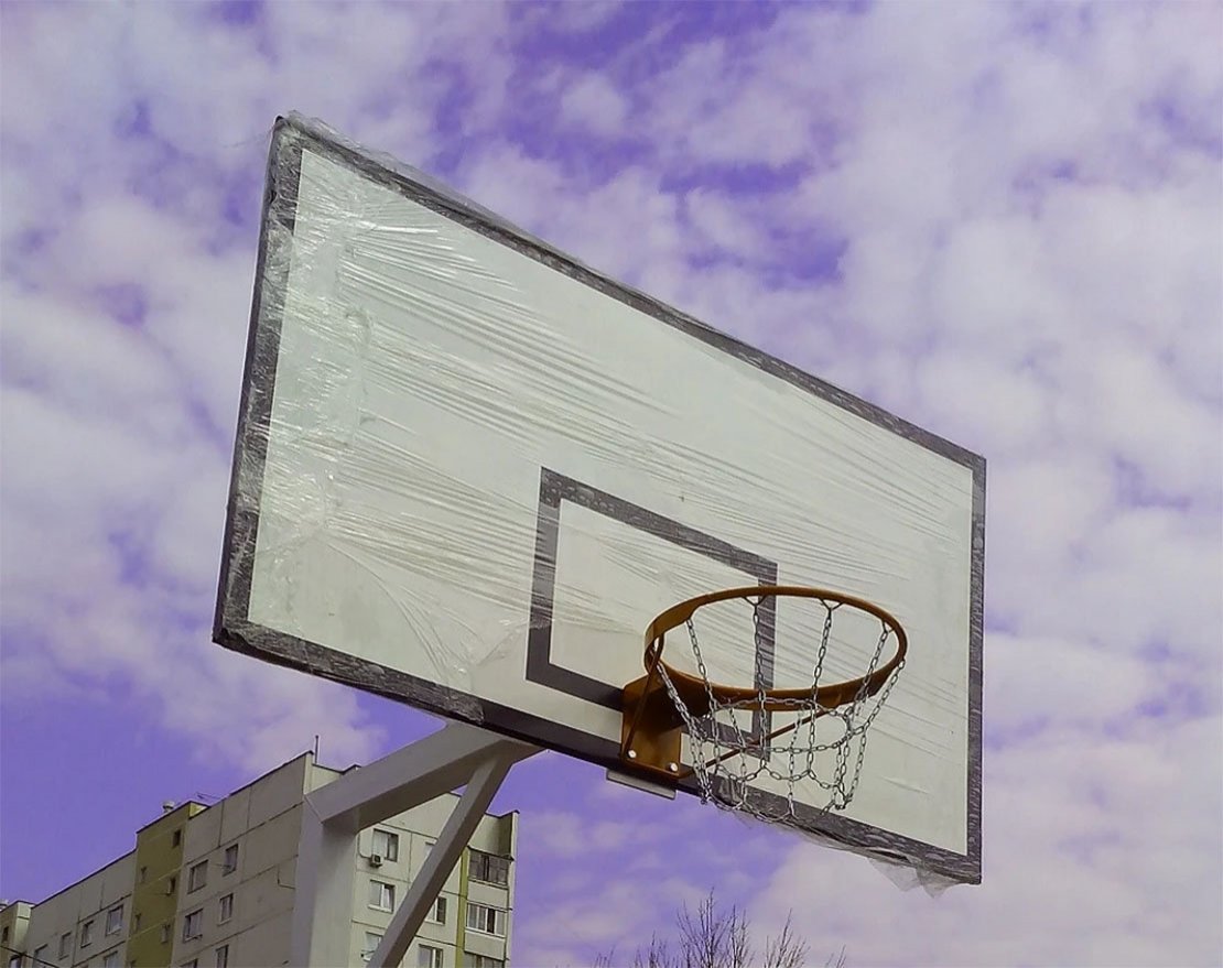 2. Щит баскетбольный игровой 1800×1050 мм, фанера 18 мм, с основанием
