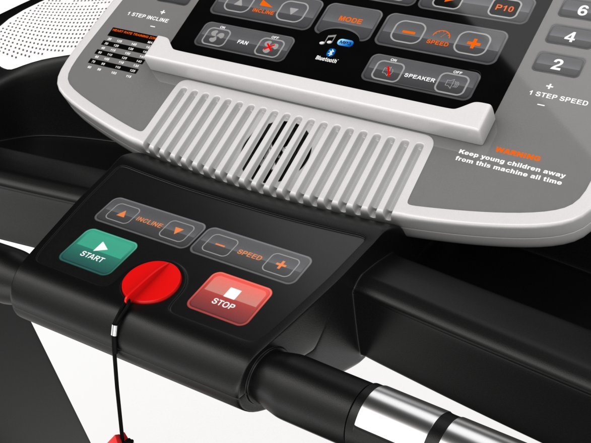 - Беговое полотно — двухслойное антискользящее покрытие (толщина 1.9 мм)
