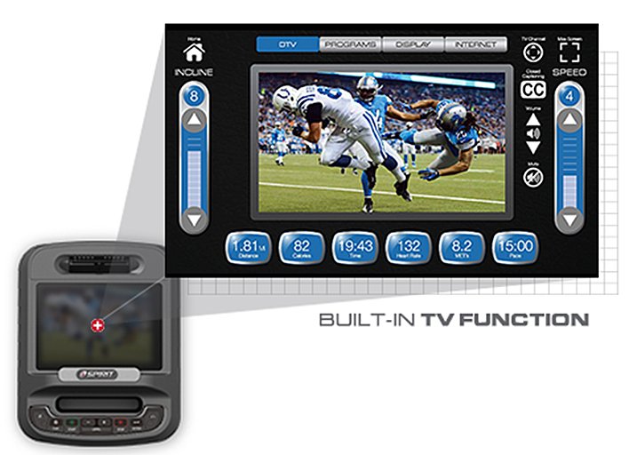 Емкостный TFT – дисплей высокого разрешения с диагональю 10,1 дюймов с богатым программным обеспечением выведут тренировки на новый уровень. Встроенный TV – тюнер, с ним Вы можете смотреть свои любимые телепередачи и фильмы, регулировать громкость, переключать каналы, что сделает Ваши тренировки более приятными, чем когда-либо.