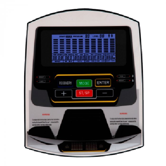 На тренажере установлен простой и современный компьютер с ЖК-дисплеем. Управление с помощью кнопок. На дислее отображается весь необходимый список параметров тренировки. Измерение пульса осуществляется с помощью встроенных датчиков на дополнительных поручнях.