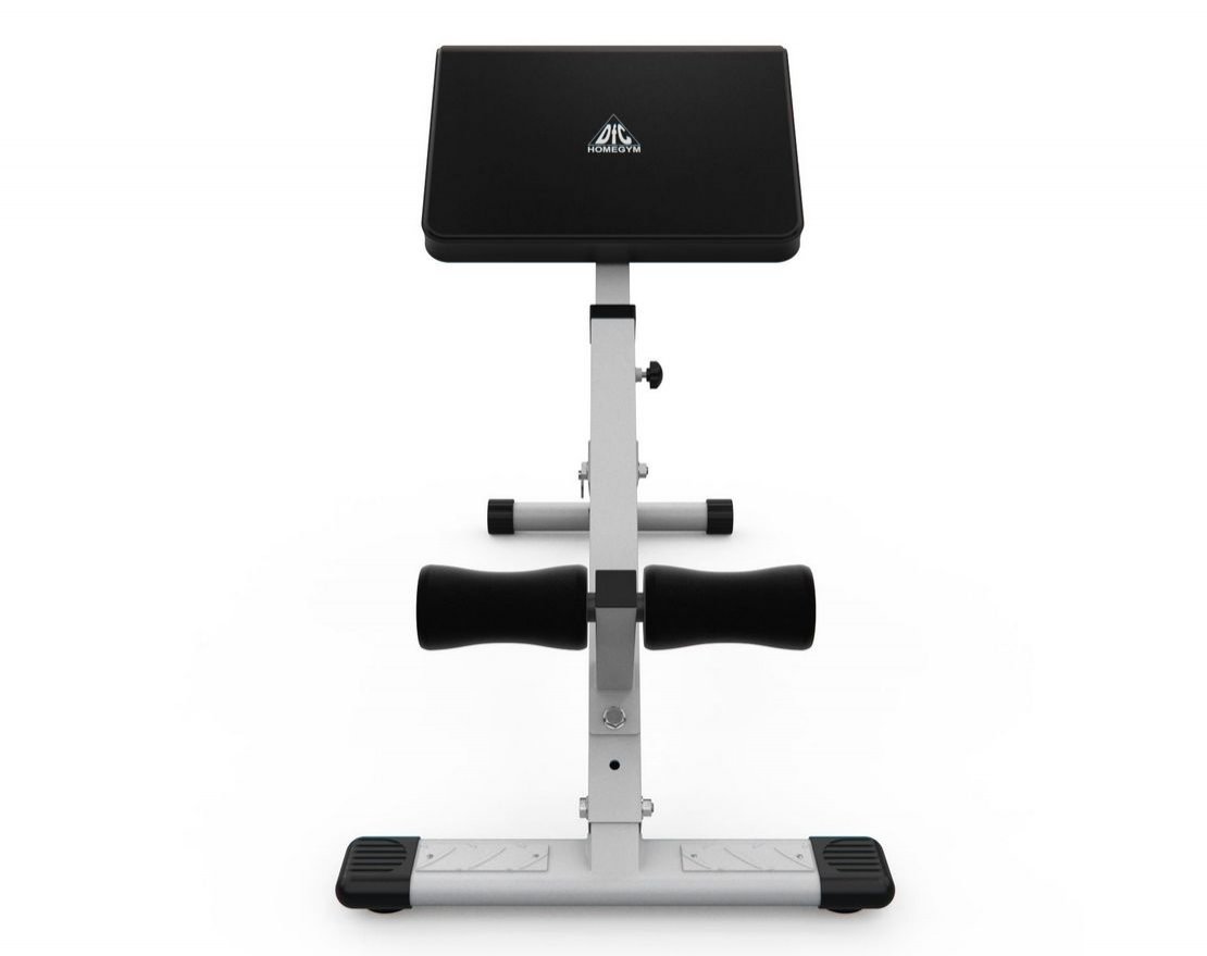 Высота тренажера регулируется, что позволяет настроить его под разный рост пользователей. Подушка имеет четыре положения регулировки в диапазоне 16 см, а размер подушки составляет 44 х 30 х 4,5 - 7 см. Валики для ног можно регулировать в трех положениях. Рама тренажера изготовлена из стального профиля размером 50х50х1,5 мм и 45х45х1,5 мм и выдерживает нагрузку до 120 кг.