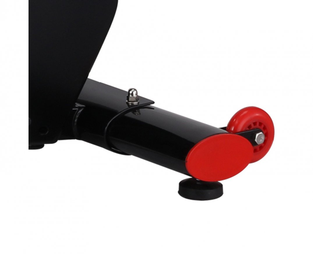 Для удобства перемещения по комнате велотренажёр оснащён транспортировочными роликами. Вся конструкция компактная и не занимает много места.