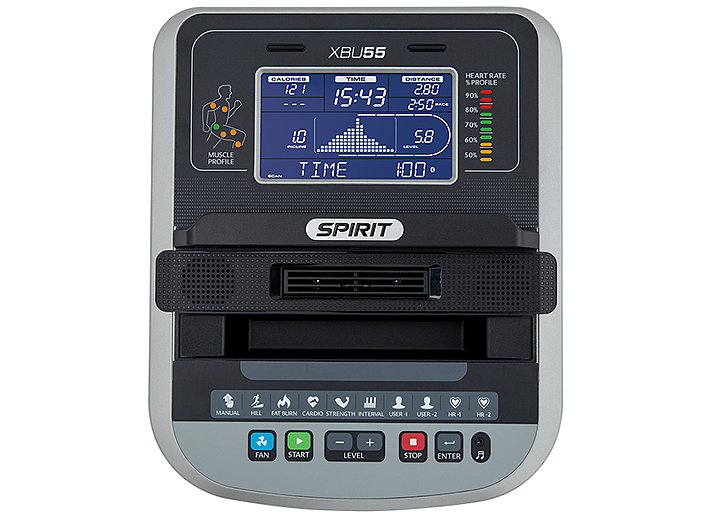 Надежный, удобный, с плавным вращением педалей — эти качества предлагает вертикальный велотренажер SPIRIT XBU55. Легкая корректировка и настройка программ, вентилятор охлаждения, сиденье из высококачественного пеноматериала и 20 уровней сопротивления, яркий LCD дисплей являются стандартными элементами модели SPIRIT XBU55.