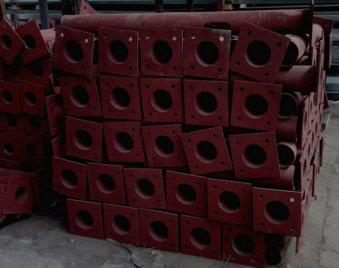 Фундаменты опор наружного освещения представляют собой крепежные элементы специализированного типа, состоящие из двух основных элементов – трубы круглого сечения и фланца квадратной формы. В качестве конструкционного материала используют бесшовный трубный прокат, который характеризуется высокой устойчивостью к механическим нагрузкам.